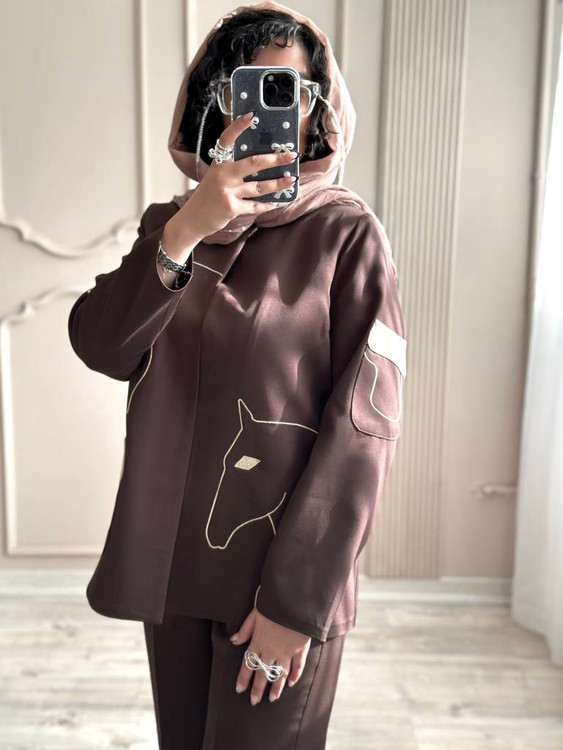 رنگ مشکی و قهوه ای با شلوار هم رنگ ست شده