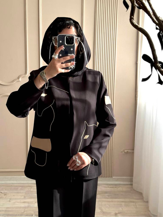 تیکه دوزی در قسمت پایین مانتو و بازو آستین