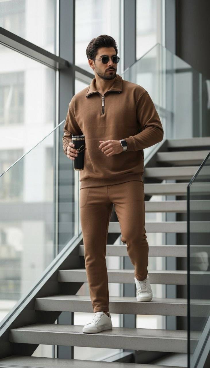 ست سویشرت نیم زیپ و شلوار مردانه تو‌کرکی